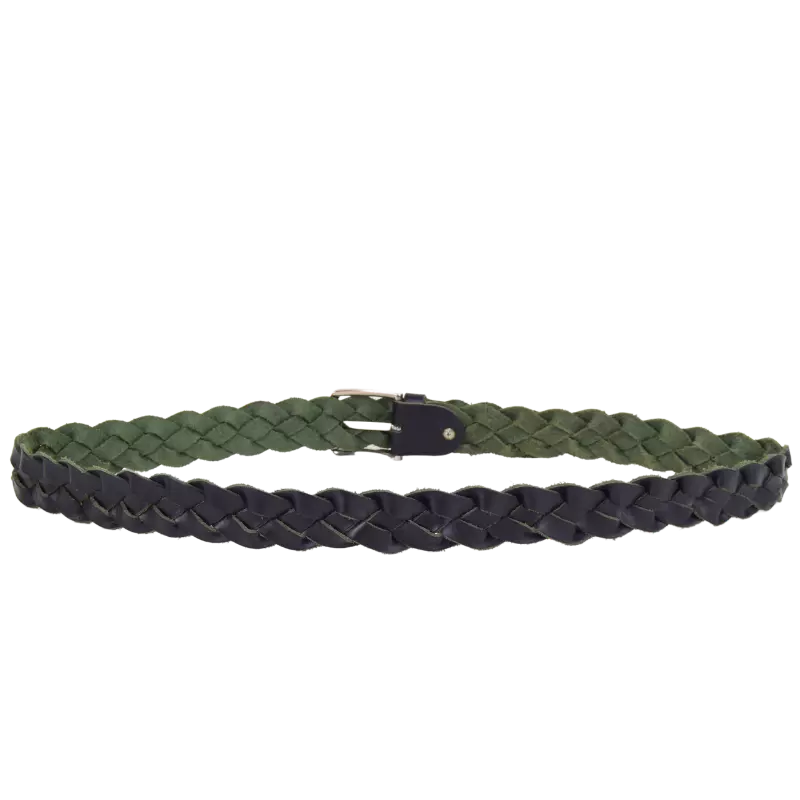 Cintura realizzata in cuoio color nero e fondo verde per tanto si intravedono i bordi colorati.