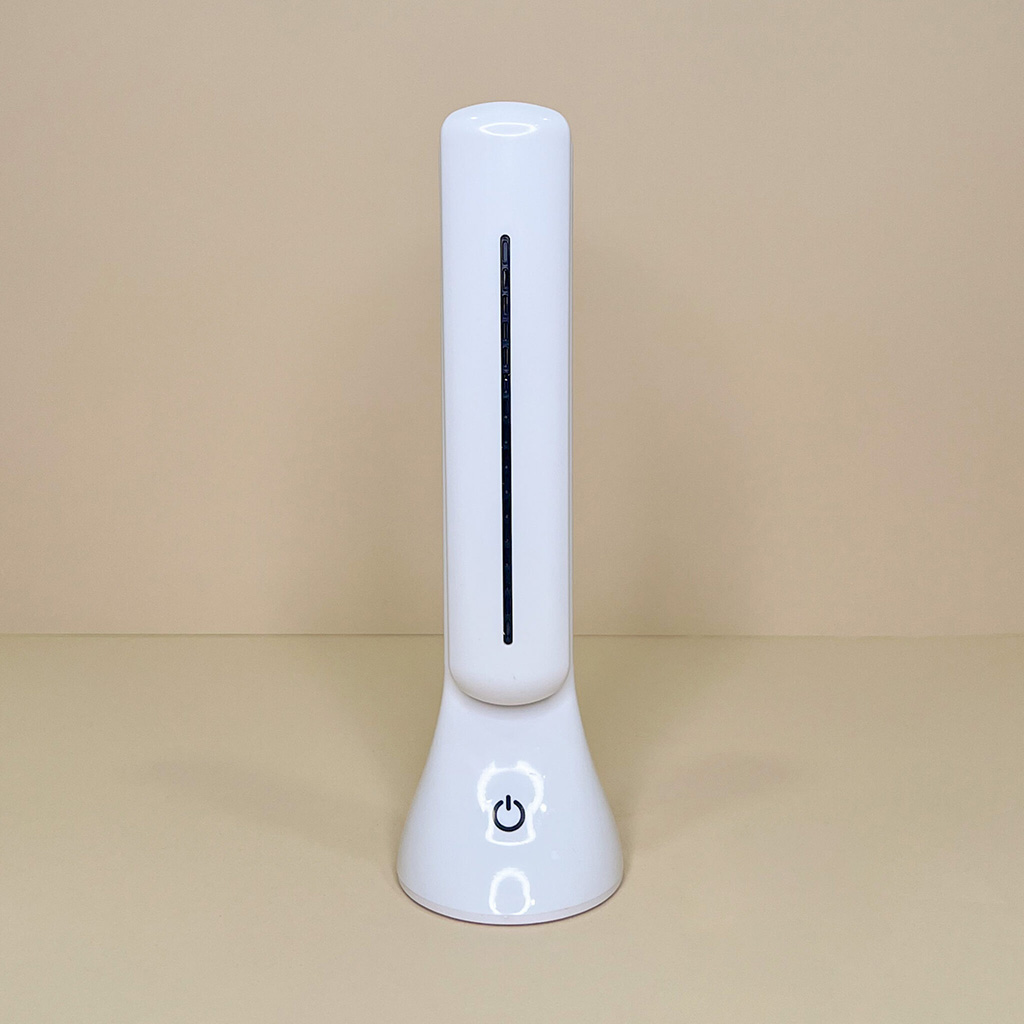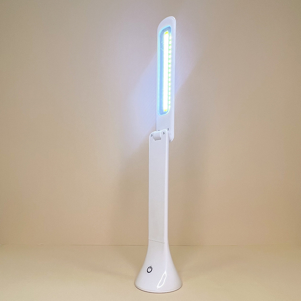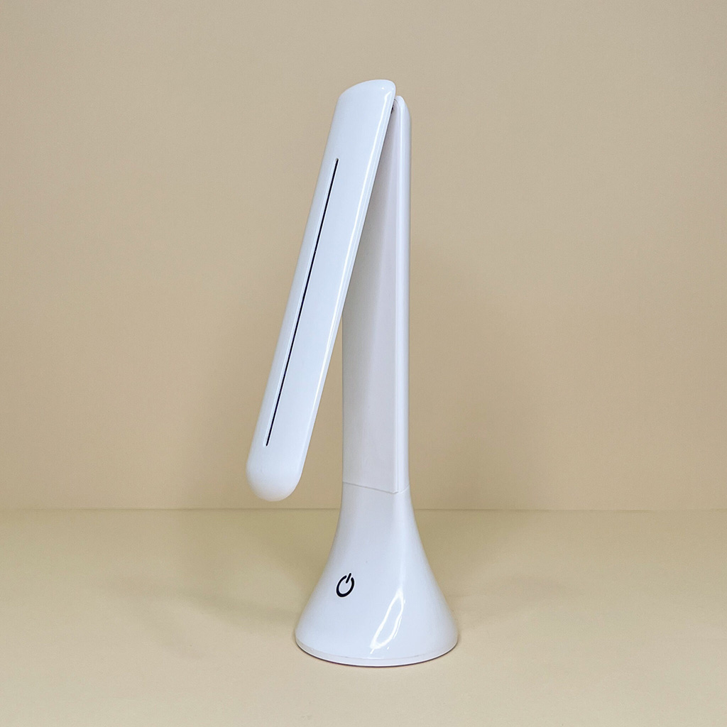 Lampada da scrivania o da comodino comoda e che non occupa troppo spazio grazie alla possibilità di chiuderla.