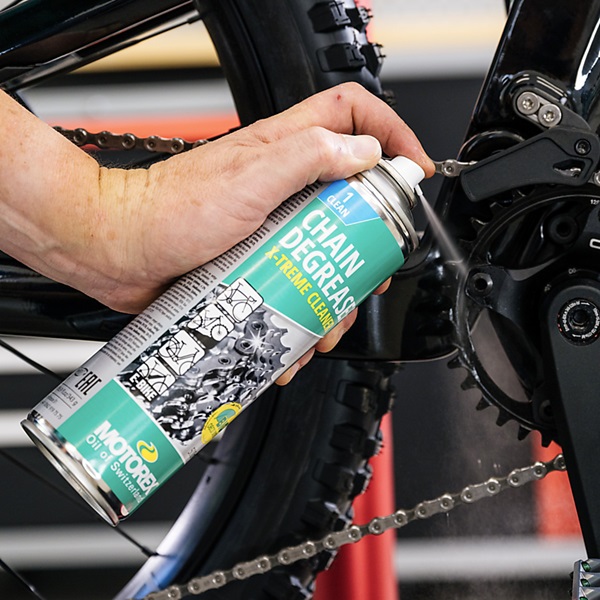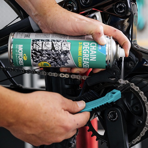 MOTOREX BIKE CHAIN ​​​​DEGREASER viene utilizzato per la pulizia rapida ed efficace di parti molto sporche come catene di biciclette, deragliatori, cassette postali, ecc.