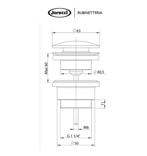 Piletta di scarico Jacuzzi per lavabo o bidet con o senza troppopieno attacco 11/4″